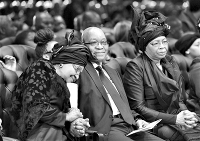 此后,曼德拉的家人代表,他在監(jiān)獄中的獄友,參加葬禮的馬拉維女總統(tǒng)班達,坦桑尼亞總統(tǒng)基奎特,以及南非總統(tǒng)祖馬等先后在葬禮上講話。祖馬還帶頭引領全場唱挽歌送別曼德拉。