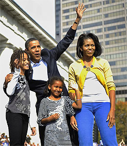 華盛頓當?shù)貢r間1月3日,在情報安全人員的護送下,美國候任“第一夫人”米歇爾·奧巴馬和兩個女兒瑪莉婭和薩莎離開芝加哥正式搬往華盛頓,為寶貝女兒即將開學做準備。5日是兩位“第一千金”的開學第一天,她們將在安全人員的保護下進行一系列入學體檢。有媒體披露奧巴馬一家暫時住在“海-亞當斯飯店”,媒體稱,新任“第一家庭”離白宮越來越近了。