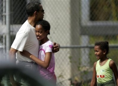 中新網(wǎng)1月16日電 據(jù)《星島日報》報道,即將于下周二(20日)宣誓就職的美國候任總統(tǒng)奧巴馬最近在百忙中,寫了一封感情洋溢的公開信給他的女兒──十歲的瑪麗亞(Malia)和七歲的薩莎(Sasha),他在信中告訴她們?yōu)槭裁礇Q定把“我們一家?guī)нM這次大冒險”,并表達出對女兒的殷切期望,字里行間令人感覺到父愛滿瀉。