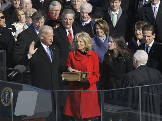 中新網(wǎng)1月21日電 當(dāng)?shù)貢r(shí)間1月20日上午11點(diǎn)56分(北京時(shí)間21日凌晨0點(diǎn)56分),美國(guó)第56屆總統(tǒng)就職典禮開(kāi)始。在最高法院法官約翰.保羅.史蒂文斯陪同下,新一屆美國(guó)政府副總統(tǒng)拜登宣誓就職。