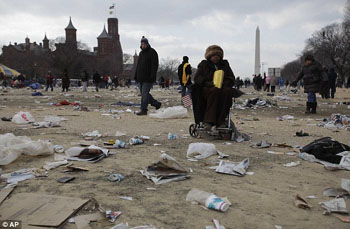 日前美國將使用衛(wèi)星在空中拍攝到華盛頓國家廣場照片,和奧巴馬總統(tǒng)就職后的進(jìn)行對比。從照片上可以看到在就職典禮當(dāng)日,國家廣場上覆蓋了白色垃圾,這些垃圾大部分是宣傳紙、報(bào)紙、塑料瓶子、食物包裝紙、一次性咖啡杯,甚至還有美國國旗。