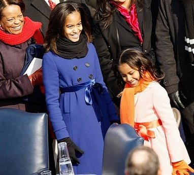 中新網(wǎng)1月22日電 美國(guó)總統(tǒng)奧巴馬的長(zhǎng)女馬莉婭(10歲)和次女薩莎(7歲)20日在奧巴馬就職儀式上的著裝獲得一致好評(píng),被稱“很可愛”,人氣不亞于總統(tǒng)夫人米歇爾的禮服。據(jù)日本共同社報(bào)道,就職儀式后有關(guān)服裝廠商接到蜂擁而至的問詢,以致于網(wǎng)頁(yè)爆滿陷入癱瘓。