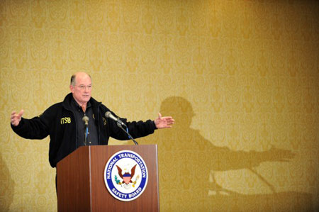 美國(guó)國(guó)家運(yùn)輸安全委員會(huì)發(fā)言人斯蒂芬·奇蘭德當(dāng)日在布法羅市舉行新聞發(fā)布會(huì),向新聞界介紹了事故現(xiàn)場(chǎng)清理工作和失事原因調(diào)查的最新進(jìn)展。