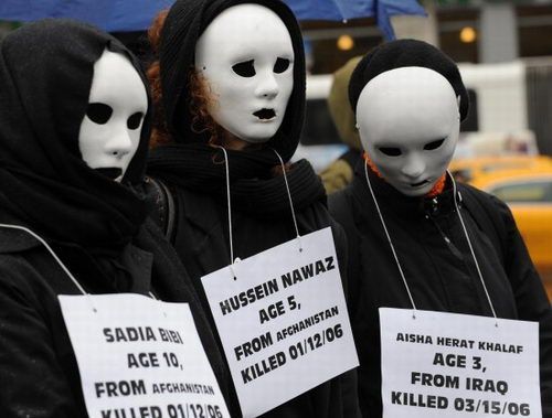 19日,反戰(zhàn)人士在紐約舉行集會游行,紀念伊拉克戰(zhàn)爭爆發(fā)6周年,要求美國政府從伊拉克、阿富汗撤軍。