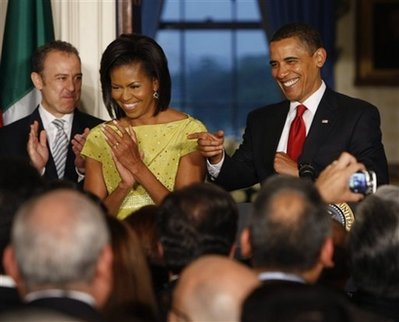 中新網(wǎng)5月5日電 據(jù)美聯(lián)社等媒體消息,美國(guó)總統(tǒng)奧巴馬偕夫人4日在白宮參加墨西哥傳統(tǒng)節(jié)日慶祝。稍早時(shí)奧巴馬還會(huì)見(jiàn)了墨西哥駐美國(guó)大使。