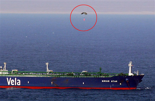 2008年11月15日,索馬里海盜劫持了沙特超大油輪“天狼星號(hào)”,并扣押23名不同國(guó)籍的船員作為人質(zhì),勒索的贖金達(dá)到350萬(wàn)美元。無(wú)奈之下,“天狼星號(hào)”用直升飛機(jī)于2009年1月9日傘降贖金,這一幕也被美國(guó)海軍拍了下來(lái)。據(jù)一些媒體報(bào)道,后來(lái)海盜因?yàn)榉众E不均發(fā)生爭(zhēng)執(zhí),造成乘坐的小船傾覆,多人死亡。為了一探事情的究竟,CNN聯(lián)系了一名生還的海盜。
