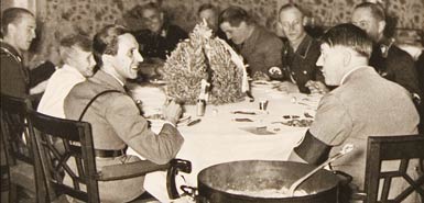 這份文件還記錄稱,更加令人感到驚奇的是,在進(jìn)餐時(shí)的談話中,希特勒的語氣并不像他在公共場合演講時(shí)那樣略帶沙啞的“歇斯底里”,而是用“標(biāo)準(zhǔn)的男中音”。對于女性,希特勒總會(huì)表現(xiàn)出一種極其自然的殷勤與真誠。他那帶有“古老奧地利”口音的殷勤和文雅,給他的言行舉止增添了一種不可抗拒的魅力。他對在他手下工作的女性總是十分尊重,而且沒有任何偏見。當(dāng)然他也要求手下的工作人員專心致志并且徹底犧牲個(gè)人的自由。希特勒在追求女性方面是一個(gè)極其糟糕的心理學(xué)家,因?yàn)樗旧砭褪且粋(gè)完美的喜劇演員,很難分辨哪是本性哪是偽裝。所有接近他的人,尤其是女人總是把自己最美的一面展示出來,而希特勒對她們表現(xiàn)出來的殷勤和虛偽總是信以為真。他明顯偏愛他的一名女秘書,這位秘書非常懂得滿足他的虛榮心。她在場的時(shí)候,希特勒總是會(huì)露出愉快的笑容,