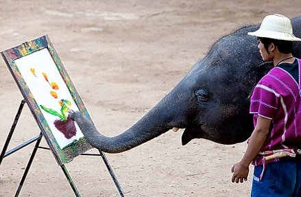 中新網(wǎng)1月10日電 據(jù)香港《大公報(bào)》援引英國媒體9日報(bào)道,今年11歲的雄性亞洲象蘭坎,是泰國北部清邁府湄沙大象訓(xùn)練營一群喜歡畫畫的大象之一,它日前輕易地畫出了一盆花,售價為2000泰銖(38英鎊)。