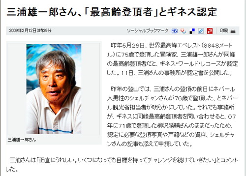 去年5月26日,當時75歲的三浦一郎成功登頂珠穆朗瑪峰。據(jù)悉,之前吉尼斯世界紀錄珠峰最高齡登頂者也是一位日本登山家,名為柳澤勝輔,2007年以71歲高齡登頂成功。