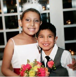 中新網(wǎng)2月25日電 據(jù)臺(tái)灣東森新聞網(wǎng)報(bào)道,美國(guó)德州出現(xiàn)一名9歲的小新娘,潔拉在父母的同意下披上婚紗,原來(lái)是因?yàn)樗净佳,可能不久于人世,她的父母因此決定,讓她跟在一名在醫(yī)院認(rèn)識(shí)的7歲小男孩荷西共結(jié)連理,雖然這場(chǎng)婚禮沒(méi)有法律效力,但仍然是一圓小女孩的新娘夢(mèng)。