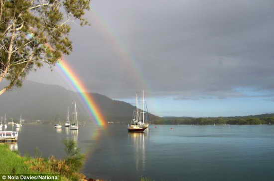 據(jù)英國《每日郵報》報道,澳大利亞業(yè)余攝影師諾拉-戴維斯稱,她拍到了一張有六道彩虹美景的圖片,六道彩虹出現(xiàn)在她家附近的一個平靜的湖面上。