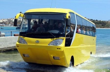 該種擁有50個座位的巴士與普通巴士一樣能以時速70英里在陸上行駛。當(dāng)遇到水路時,只需輕按開關(guān),巴士的輪子就會縮進(jìn)車身,空氣活門便會推動巴士,巴士便能在水中航行,并且淡水和海水均適用。不過這種巴士并不便宜,一輛售價就要28萬英鎊。