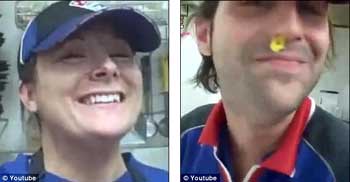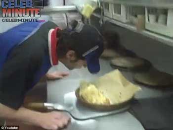 報(bào)道稱(chēng),這兩名員工用攝像機(jī)進(jìn)行了自拍,并將錄像放到了網(wǎng)上,引起軒然大波。錄像中,一名男員工正在做三明治,他把一小塊奶酪抹在自己的鼻孔,然后又得意忘形的把這塊奶酪放進(jìn)了三明治中。隨后,他還將一段臘腸放在自己的屁股后,疑似在上面放屁。