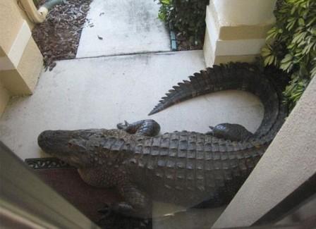 這家住戶的鄰居發(fā)現(xiàn)這條鱷魚躺在門口一動不動,然后電話通知這家主人唐納德。唐納德起初還不相信,往外看時大吃一驚。隨后她報警并被命令在家呆著。