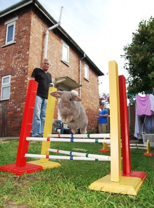 中新網(wǎng)5月4日電 對(duì)于一般人家的兔寶寶來(lái)說(shuō),每天最?lèi)芤獾氖履^(guò)于睡睡懶覺(jué)或是啃啃胡蘿卜;然而英國(guó)哈斯拉姆家六只寵物兔的生活卻不落俗套,據(jù)英國(guó)《每日郵報(bào)》1日的報(bào)道,在主人的指導(dǎo)下,這六只小兔每天都要接受“跨欄”訓(xùn)練,它們還滿懷信心的要去參加寵物比賽。