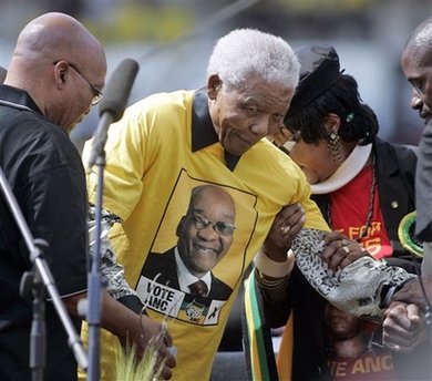 而曼德拉的到場(chǎng),提高了祖馬的競選聲勢(shì)。曼德拉發(fā)表了提前錄制的講話。