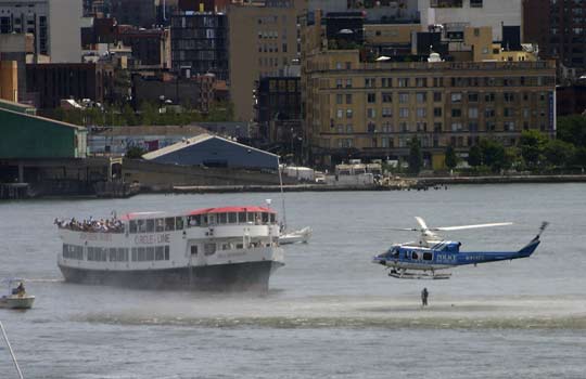 目前,紐約市和新澤新州的應急救援機構人員共同在哈德遜河中,努力營救失事飛機上的人員。