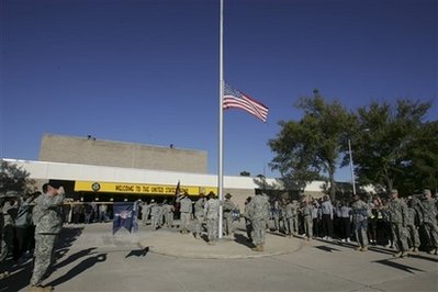 奧巴馬并下令即日起到11日退伍軍人節(jié)為止,白宮和其它聯(lián)邦機構(gòu)降半旗向受難者致哀。他說,這是對那些正準(zhǔn)備為國家冒生命危險卻喪命的人的最起碼敬意。