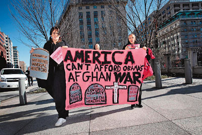 一批反戰(zhàn)人士前天到白宮外示威,身穿黑衣服抬棺材抗議,指摘當(dāng)局為增兵而犧牲醫(yī)療和教育改革。多個(gè)反戰(zhàn)組織2日起在紐約、華盛頓等全美十多個(gè)城市,發(fā)起一連串示威游行。