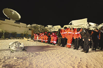 中國國際救援隊(duì)隊(duì)員于海地時間14日凌晨抵達(dá)聯(lián)海團(tuán)總部大樓營救現(xiàn)場后,已夜以繼日地奮戰(zhàn)了幾十小時。