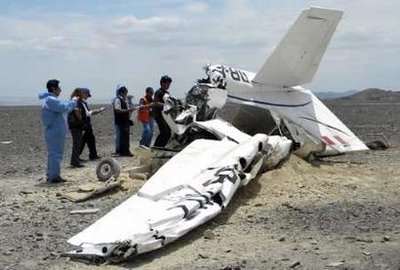 秘魯國家通訊社稱,飛機上共有3名智利人和4名秘魯人,其中包括一名兒童。警方稱事故發(fā)生在當(dāng)?shù)貢r間11時30分,出事地點靠近古老神秘的游覽勝地納斯卡地畫區(qū)。