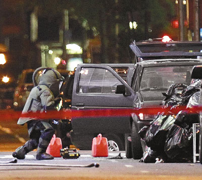 前晚,警方在紐約最繁忙地帶時(shí)代廣場(chǎng)上的一輛空車內(nèi),發(fā)現(xiàn)一枚土制炸彈正在冒煙,當(dāng)局立即封鎖廣場(chǎng)并疏散游人,成功拆除炸彈。由于事發(fā)時(shí)正值百老匯歌劇開演的傍晚時(shí)分,現(xiàn)場(chǎng)游人眾多,假如炸彈成功爆炸,后果將不堪設(shè)想。紐約州州長(zhǎng)佩特森表示,事件是恐怖襲擊。
