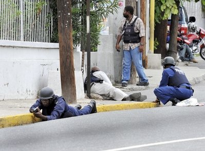 軍警周二在金斯敦各處布防,并在西區(qū)繼續(xù)沿街搜索,槍聲不時(shí)響起。金斯敦的學(xué)校周二停課,商店停業(yè)。西區(qū)黑煙滾滾,武裝直升機(jī)盤旋。目擊記者稱,3輛裝滿尸體的貨車在一間主要醫(yī)院的停尸間卸下尸體。