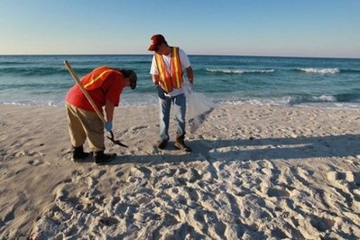 墨西哥灣海岸官員表示,佛州西北部海水與沙灘中已經(jīng)都被染上油污。當(dāng)?shù)囟鄠(gè)海灘下達(dá)了游泳禁令。佛州官員已加大力度投入清理工作,阻止油污進(jìn)一步擴(kuò)散。