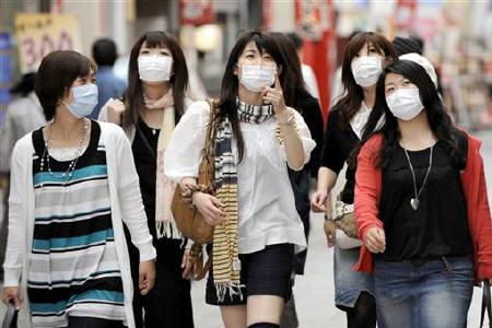 部分日本人已經(jīng)習慣戴口罩以防花粉過敏或怕將感冒傳染給其他人,口罩在大阪及兵庫縣西部地區(qū)已成為基本飾品。目前這些地區(qū)感染新流感的人數(shù)已經(jīng)超過150人。