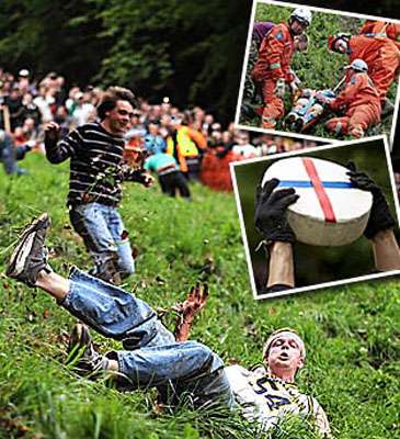 中新網(wǎng)5月27日電 據(jù)香港大公網(wǎng)報(bào)道,英國(guó)格洛斯特郡25日舉行一年一度的“追芝士比賽“。這項(xiàng)賽事已有數(shù)百年歷史,比賽規(guī)則十分古怪,參賽者要站在庫(kù)珀山山頂,沿山坡追逐滾下山的一塊芝士,今年有58人受傷。