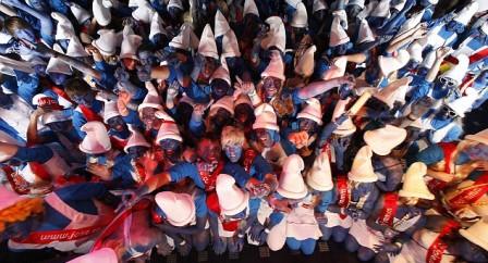 據(jù)悉,前紀錄是由1253名藍精靈于去年在愛爾蘭城鎮(zhèn)卡爾斯布拉尼創(chuàng)造的。