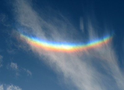 專家解釋,一般彩虹的出現(xiàn),是光線穿透雨點(diǎn)后折射到另一處時所產(chǎn)生的現(xiàn)象。但這朵天空中的“微笑”是日光穿透卷云或?qū)釉浦械臄?shù)百萬顆細(xì)微冰晶粒子時形成。
