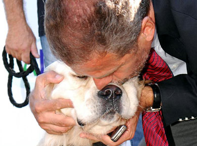 據(jù)克羅地亞“新聞”網(wǎng)站報道,當?shù)財z影師杜布拉夫科·瓦圖茨拍攝下了這一幕。當時這位現(xiàn)任的薩格勒布市市長雙手緊緊抱住金毛的脖子并“強吻”,這一反常舉動不僅讓周圍的人們吃驚,也嚇壞了原本溫順的金毛,緊接著便出現(xiàn)了戲劇性的一幕。