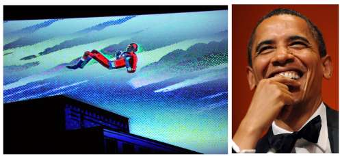 中新網(wǎng)6月21日電 一段把美國(guó)總統(tǒng)奧巴馬描繪成排除萬(wàn)難的超級(jí)英雄大加諷刺的音樂錄像,19日在美國(guó)的電臺(tái)及電視臺(tái)派員協(xié)會(huì)周年晚宴上播放。有份列席的奧巴馬觀賞這段錄像時(shí)笑得合不攏嘴。