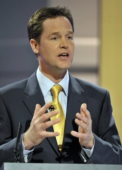 中新網(wǎng)4月19日電 綜合媒體報(bào)道,英國(guó)自由民主黨領(lǐng)袖尼克.克萊格在英國(guó)三黨領(lǐng)袖電視辯論中的出色表現(xiàn),使自民黨得以在英國(guó)競(jìng)選中取得領(lǐng)先地位。