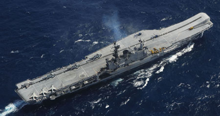 印度海軍還在大力發(fā)展航母等藍水海軍的戰(zhàn)略武器。今年2月28日,印度第一艘自主研制航母的組裝開工儀式在南部港口城市科欽舉行。印度人預計這艘國產(chǎn)航母在2014年左右可以形成戰(zhàn)斗力。而印度此前就已經(jīng)向俄羅斯進口的“戈爾什科夫”號航母則有望在2012年服役。未來印度海軍的兩個航母編隊同時執(zhí)勤,一艘可以在印度洋保持日常巡邏,另一艘則可以前出阿拉伯海甚至太平洋、大西洋等地活動,提高印度的全球影響。