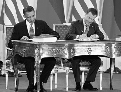美國(guó)總統(tǒng)奧巴馬簽署后,形容這是向“無(wú)核武世界”邁出重要一步。俄羅斯總統(tǒng)梅德韋杰夫表示,這是一份雙贏協(xié)議,為俄美合作掀開(kāi)新一頁(yè)。
