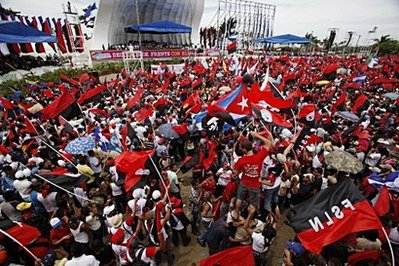 1979年7月19日,桑地諾民族解放陣線(桑解陣)帶領(lǐng)尼加拉瓜人民推翻了索摩查家族長(zhǎng)達(dá)40余年的專制統(tǒng)治,入主首都馬那瓜,聯(lián)合社會(huì)各界政治力量成立了民族復(fù)興政府。但桑解陣在1990年全國(guó)大選中敗北,成為在野黨。之后,桑解陣幾經(jīng)沉浮,于2006年11月重新成為執(zhí)政黨。桑解陣總書記奧爾特加在2006年11月的尼加拉瓜總統(tǒng)選舉中勝出。