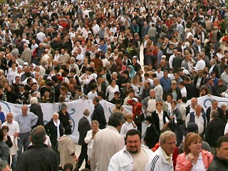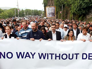 5月26日格魯吉亞反對(duì)派在首都第比利斯舉行大規(guī)模游行示威活動(dòng),從全國各地趕來的約6.5萬名支持者參加。為了迫使總統(tǒng)薩卡什維利下臺(tái),反對(duì)派宣布準(zhǔn)備采取激進(jìn)措施,封鎖鐵路、國道和機(jī)場(chǎng)。反對(duì)派“為了統(tǒng)一的格魯吉亞”運(yùn)動(dòng)領(lǐng)袖別謝利婭在議會(huì)大廈前的集會(huì)上宣布:“今天我們將封鎖鐵道,從今天起我們將開始最激進(jìn)的行動(dòng)。”反對(duì)派保守黨領(lǐng)袖濟(jì)濟(jì)古里宣布:“我們計(jì)劃首先和平封鎖鐵路,然后是機(jī)場(chǎng)。我們的行動(dòng)將是和平的,但極其激進(jìn)!狈磳(duì)派“格魯吉亞道路”黨領(lǐng)袖祖拉比什維利宣布:“我們將用汽車封鎖中央(公路)干線,然后步行去封鎖鐵路!