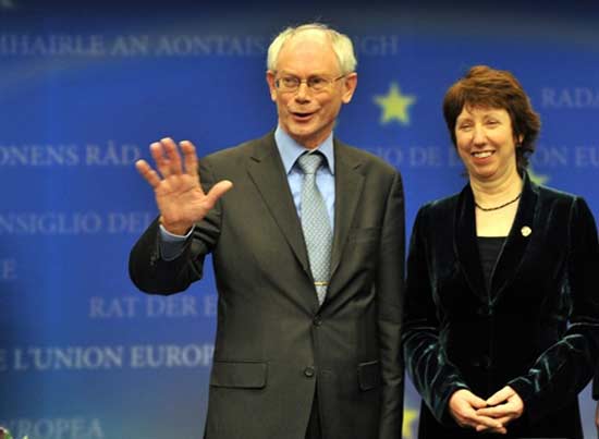 中新網(wǎng)11月20日電 綜合媒體報道,歐盟27國領(lǐng)導(dǎo)人19日匯聚布魯塞爾選舉歐盟“總統(tǒng)”和“外長”,最終比利時現(xiàn)任首相范龍佩、歐盟委員會貿(mào)易現(xiàn)任委員英國人阿什頓女士分別當(dāng)選歐盟理事會主席以及歐盟外交和安全政策高級代表。