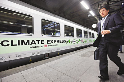 一列載有450名氣候變化大會(huì)代表、聯(lián)合國官員和非政府組織成員的“氣候快車”,經(jīng)過10多個(gè)小時(shí)的行程后,5日晚終于抵達(dá)丹麥?zhǔn)锥几绫竟,為今次峰?huì)拉起帷幕。
