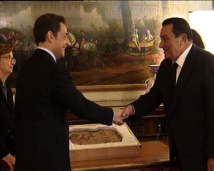 中新網(wǎng)12月15日電 據(jù)法新社報道,14日,埃及總統(tǒng)穆巴拉克到訪法國,受到法國總統(tǒng)薩科齊的接見并收到一件特殊禮物——埃及長期以來要求法國歸還的埃及墓穴文物。