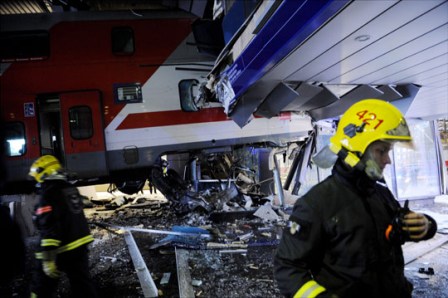 芬蘭鐵路局官員稱,4日上午,一列火車在開進(jìn)首都赫爾辛基中央車站后,剎車系統(tǒng)突然失靈,火車毫無預(yù)兆地沖進(jìn)車站旁假日酒店(Holiday Inn)的會(huì)議室。