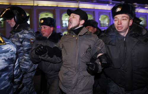 在大城市圣彼得堡,也有群眾在市中心舉行類(lèi)似的集會(huì),宣泄對(duì)政府的不滿。警方迅速采取行動(dòng),迫使集會(huì)終止。目擊者說(shuō),警察采用武力,揮動(dòng)警棍打示威者。