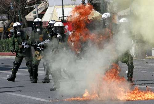 其中在雅典中部有三萬多人示威,于國會大樓外等多處地方,示威者向防暴警察投擲石塊和汽油彈,放火燒車和垃圾桶,又破壞銀行、珠寶店、戲院等10多間商店,警方發(fā)射催淚彈和手榴彈驅(qū)散人群。