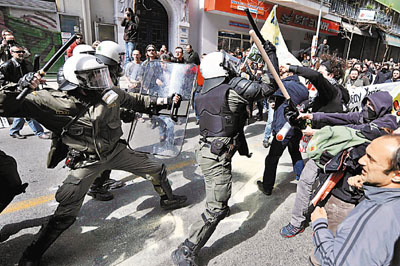 在市場及歐盟的壓力下,陷入債務(wù)危機的希臘政府不得不宣布采取更加嚴苛的措施,以換取歐盟支持。希臘政府本月初宣布削減公務(wù)員工資、增加消費稅和燃油稅等緊縮政策,預計整套方案將為政府增收節(jié)支四十八億歐元。該措施的實施在希臘國內(nèi)引起反對黨以及民眾的強烈反對。在過去一個月時間里,希臘已發(fā)生多起罷工和抗議示威活動。