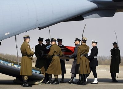 波蘭總統(tǒng)卡欽斯基乘坐的專機(jī)10日在從華沙飛往俄羅斯斯摩棱斯克市,參加卡廷森林事件70周年紀(jì)念活動。途中飛機(jī)在斯摩棱斯克“北方”軍用機(jī)場附近降落時失事,共造成包括卡欽斯基夫婦及眾多政府高官、軍隊(duì)司令在內(nèi)的96人死亡。