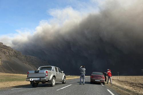 正在冰島觀察火山爆發(fā)的荷蘭氣象學(xué)家埃德溫•詹尼表示:“現(xiàn)在,我們距離火山口大約有25公里遠(yuǎn),正在觀察一個(gè)灑滿陽(yáng)光的冰蓋。它的上空有一片高達(dá)4公里至5公里的火山灰云柱,這簡(jiǎn)直是真正的地獄……”