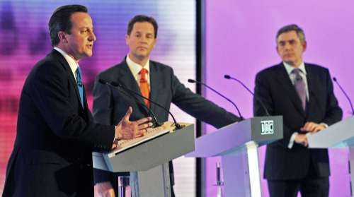 中新網(wǎng)5月1日電 英國三大政黨黨魁二十九日進行大選之前最后一次電視辯論。據(jù)香港大公網(wǎng)報道,民調(diào)顯示保守黨黨魁卡梅倫得分最高。幾個電視臺在辯論結(jié)束后對民眾的即時調(diào)查發(fā)現(xiàn),至少三分一選民仍然未能決定支持那一政黨,電視辯論可增強選民對黨魁和各黨政策的了解,但不見得有哪里一黨通過電視辯論令大多數(shù)選民信服。
