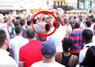 這名德國隊(duì)支持者赤裸著上身,誤入英格蘭球迷陣營。他不斷地被人群推搡,還遭到肘臂擊撞。據(jù)悉,英格蘭慘遭淘汰后,類似的騷亂事件還在英國其他街頭和酒吧中發(fā)生。
